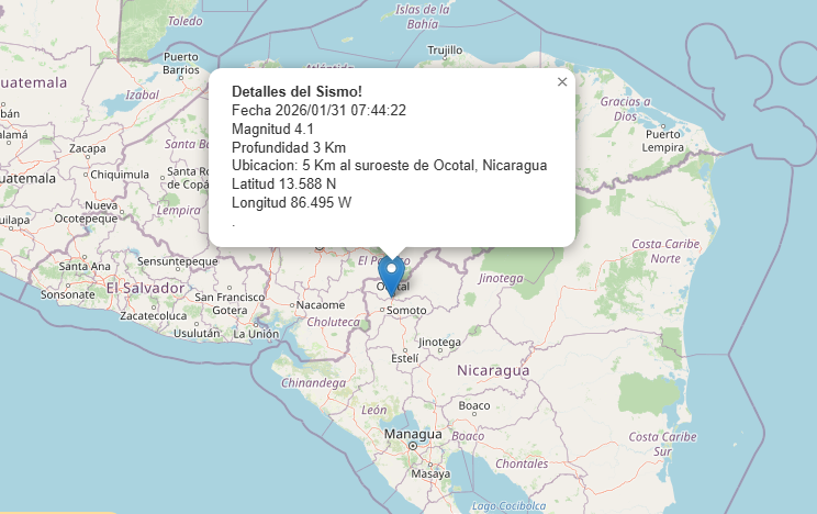 Desde las 02 pm del díaviernes 30 de enero, a las08:06 am del sábado 31 de enero, se han reportado 30réplicas de sismo de baja intensidad en el departamento de Nueva Segovia, siendo el de mayor intensidad, el delsábado 31 de enero a las 07:44 am con una magnitud de 4 a 2 km al suroeste de Ocotal,según el reporte de INETER.