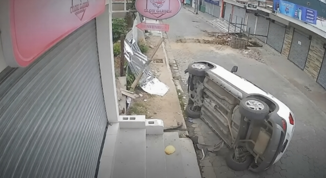 El incidente ocurrió en las cercanías del Almacén Sony, cuando el conductor, que circulaba de norte a sur, perdió el control al intentar girar hacia el este. El automotor impactó contra la acera y terminó volcado sobre la vía pública, provocando únicamente daños en la carrocería y la infraestructura urbana.