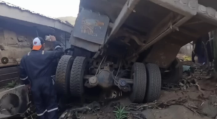 Camión colisiona con dos vehículos y termina estrellándose en una vivienda