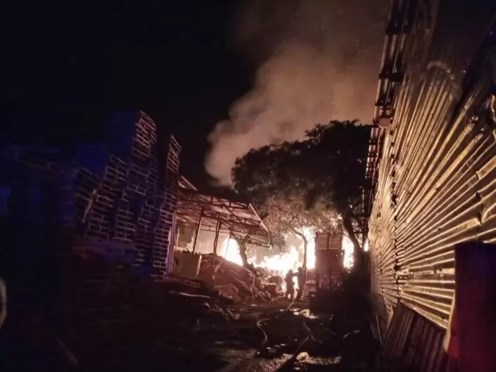 Voraz incendio reduce a cenizas negocio de polines en Sabana Grande, Managua