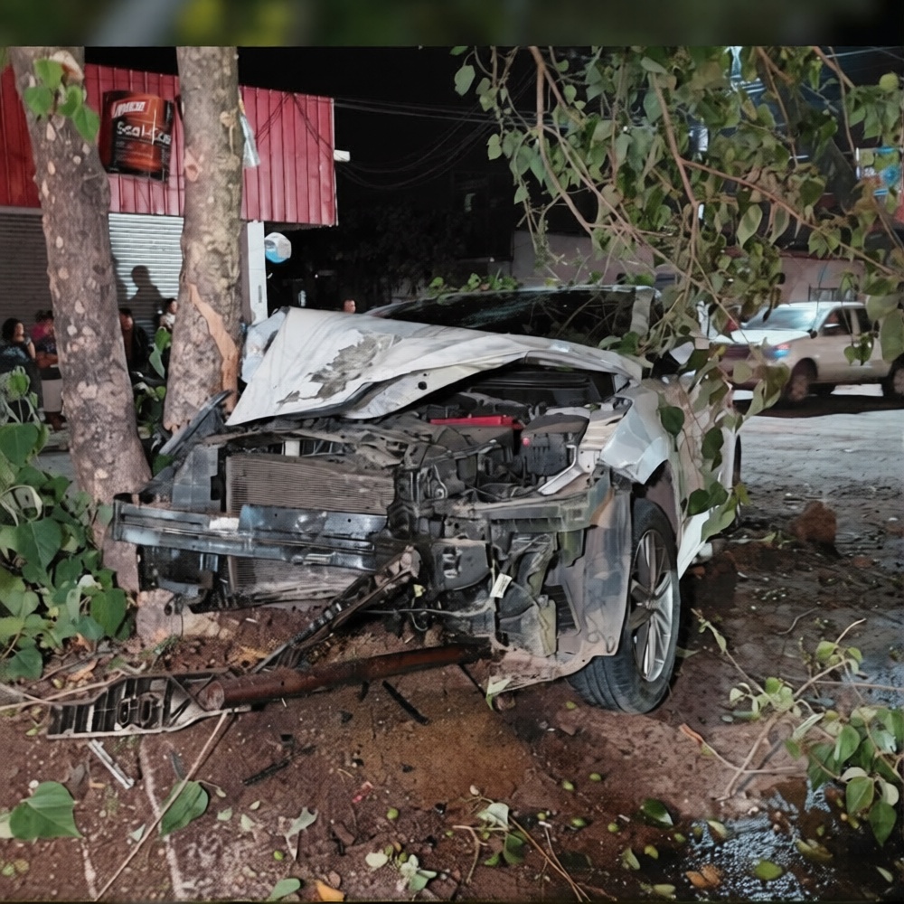 Conductor huye tras chocar su vehículo contra varios objetos fijos