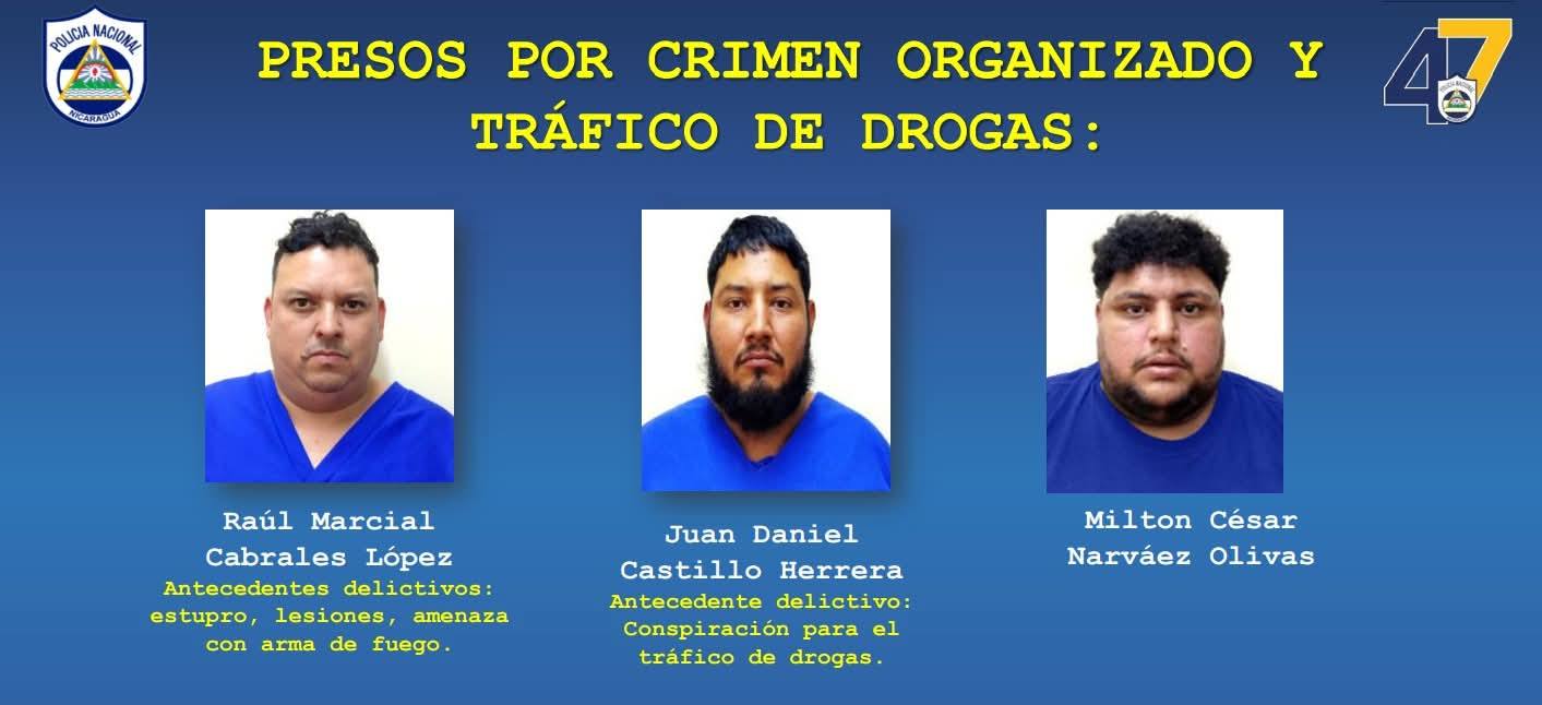 Castillo Herrera, Cabrales López y Narváez Olivas fueron capturados por crimen organizado y tráfico de drogas, siendo remitidos a las autoridades competentes.